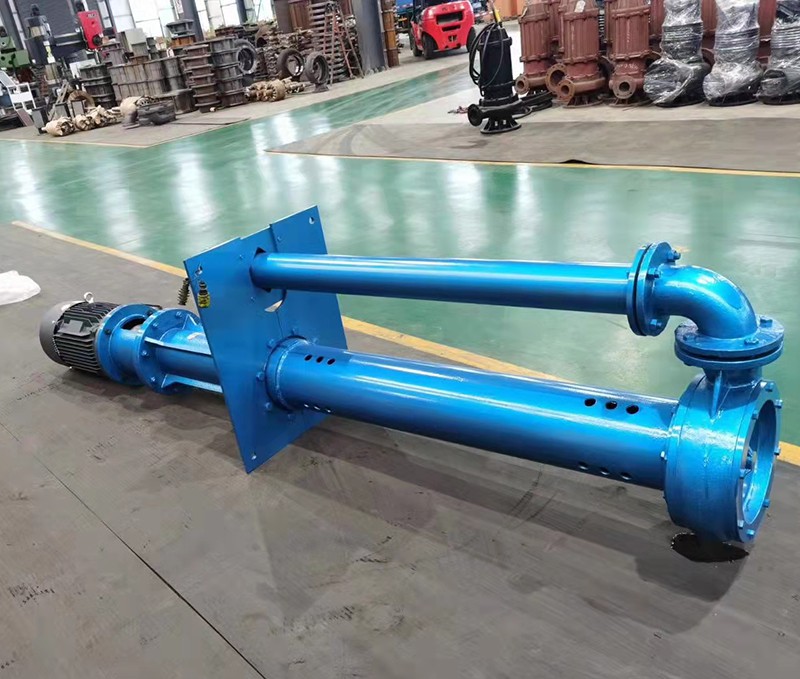 1.YW型泵為單級單吸,液下式離心泵,用聯接管連接泵的水力部件和軸承體及支承盤,液體由出水管部件排除,葉輪為半開式葉輪,井在葉輪葉片進口延伸處設有攪拌葉片,可輸送含有顆粒的介質。該泵的長液下深度為8m,當液下長度超過1.5m時,就要采用接軸結構,并在接軸處的附近裝有滾動軸承(油脂潤滑),采用聯軸套連接。泵下的滾動軸承用機械密封與液面隔離,不接觸液體。泵軸承有足夠的剛度,可以保證泵平穩運行,如果在深井中運行,可以加置一條吸入管(合同中注明)。